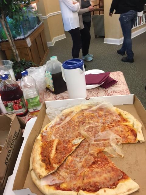 Rabbi O and Dale Sattin presented a slide show of pictures from this year’s events, brought pizza, sushi, and ice cream (food, of course!), and took the opportunity to tell the residents how much these monthly visits have meant to everyone at AHA who participated in this mitzvah program.