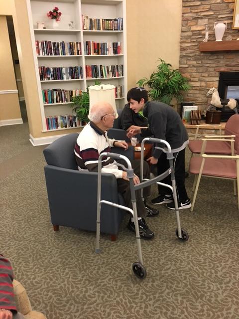 The 8th grade students visited the Abrams Residence to share some shmoozing, craft-making, and donuts with the seniors. Abrams appreciates the generosity of the Legacy Heritage Fund in funding this program.