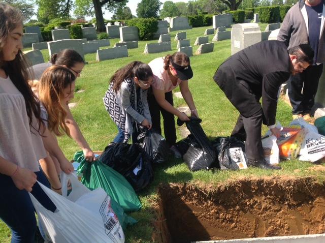 Rabbi O took the 8th grade students to the cemetery to bury old prayer books, etc. that are no longer used and accumulated at the school through the years.